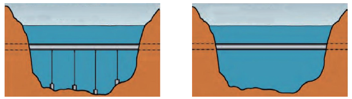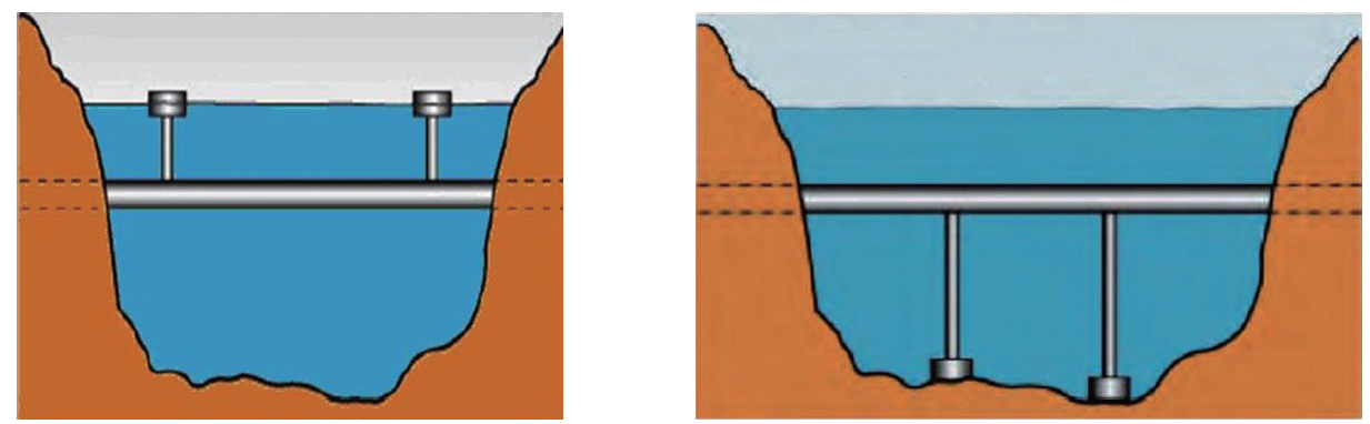 图1 浮筒固定方案 图2 水底立柱支撑方案